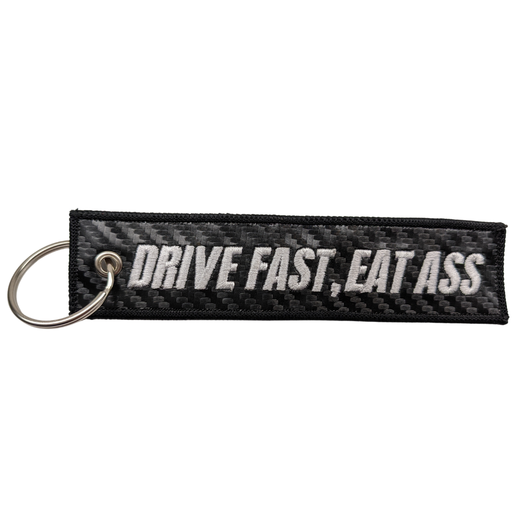 "Drive Fast, Eat Ass" Carbon Fiber Keytag