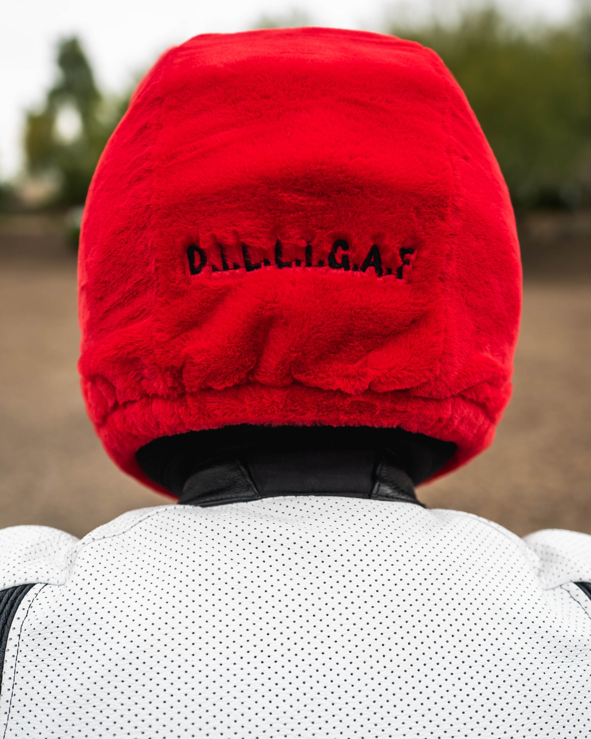 The Red Monster motorcycle helmet cover is an ambiguous but fun character! Entertain cars driving next to you by wearing this helmet as you ride down your local streets. This helmet cover is easily put on and removed due to it's simple elastic liner keeping the cover nice and snug on the helmet.