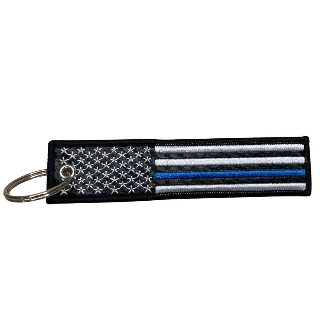 Thin Blue Line American Flag Carbon Fiber Keytag