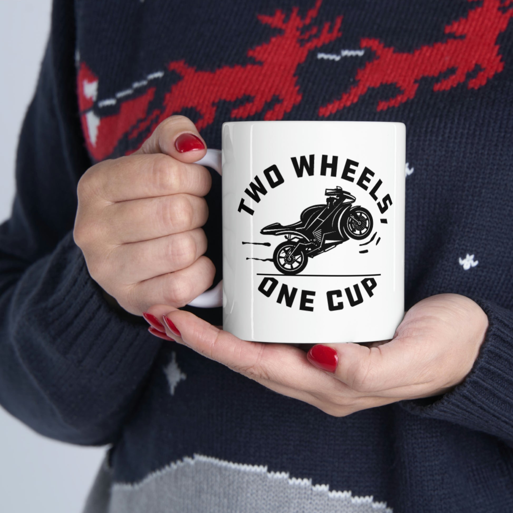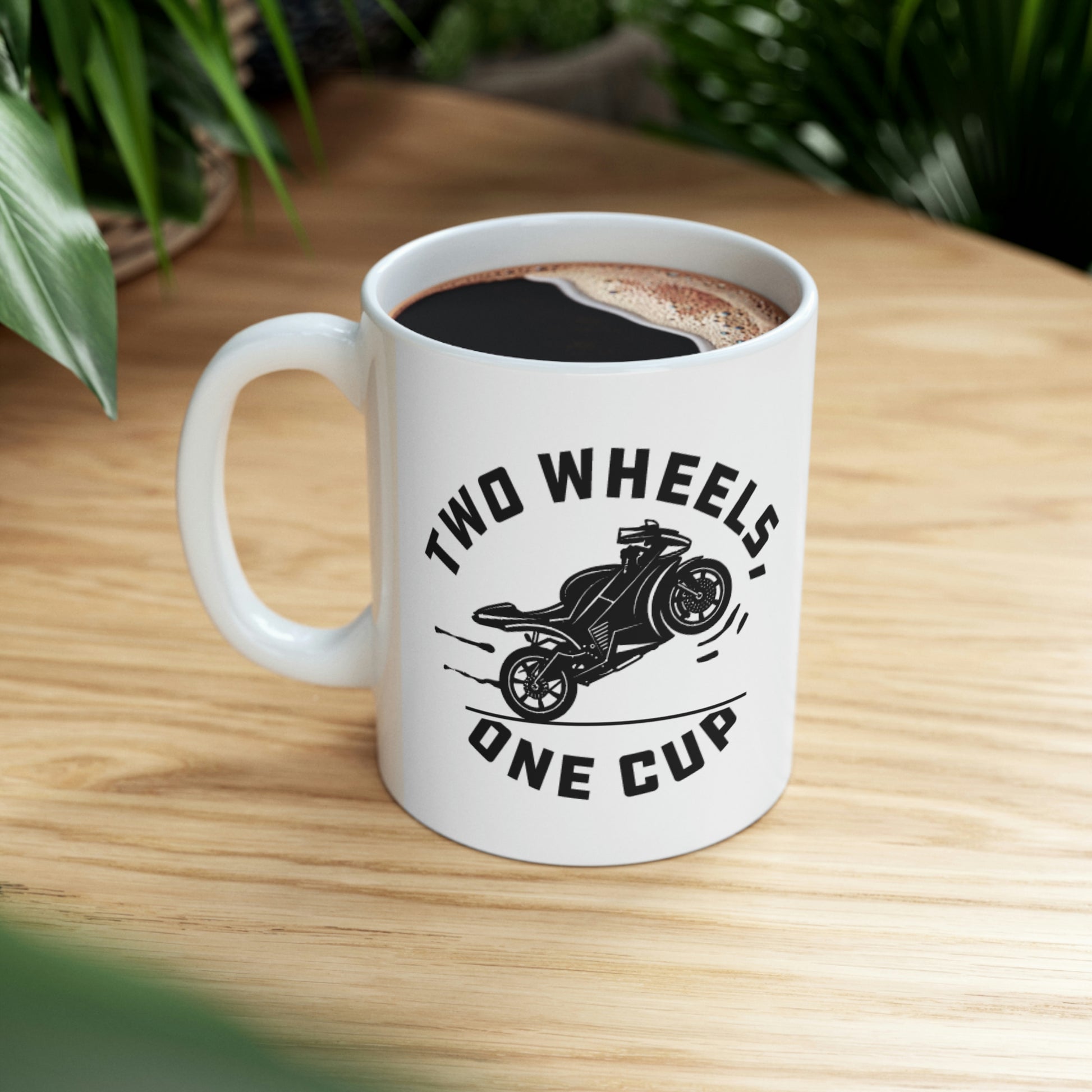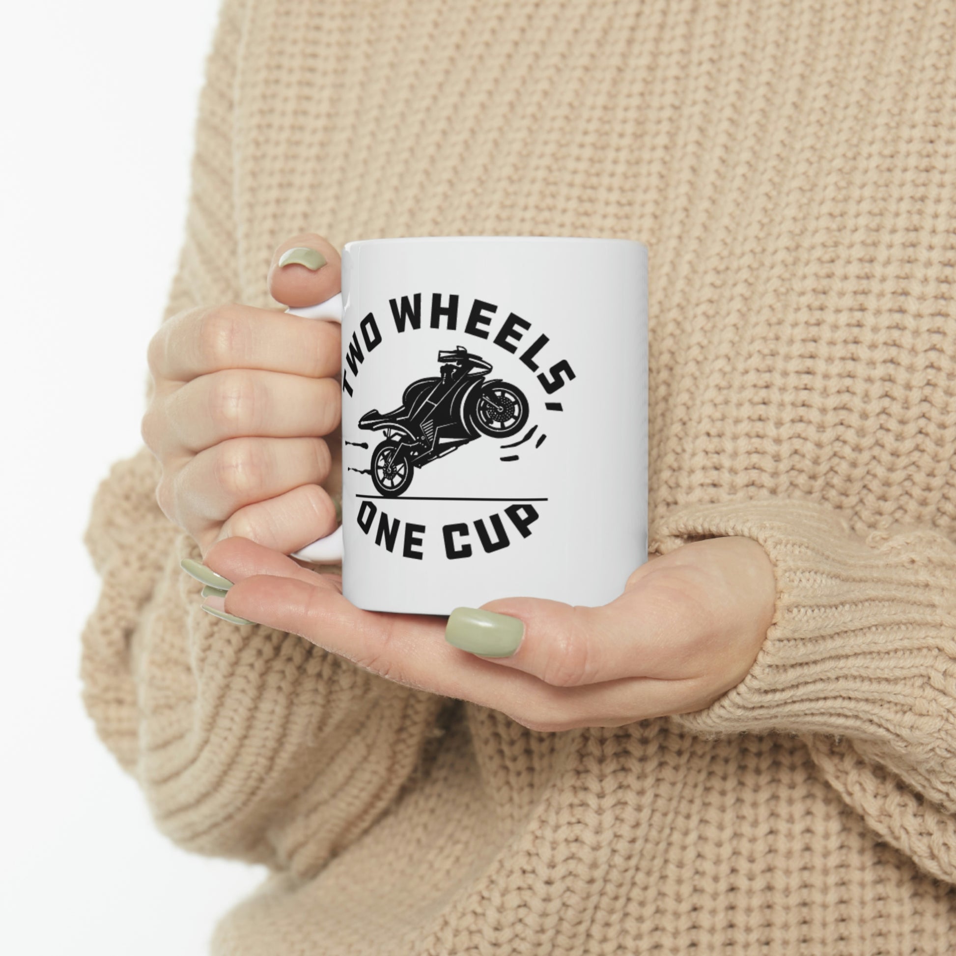 "TWO WHEELS ONE CUP" Wheelie Mug - 11oz