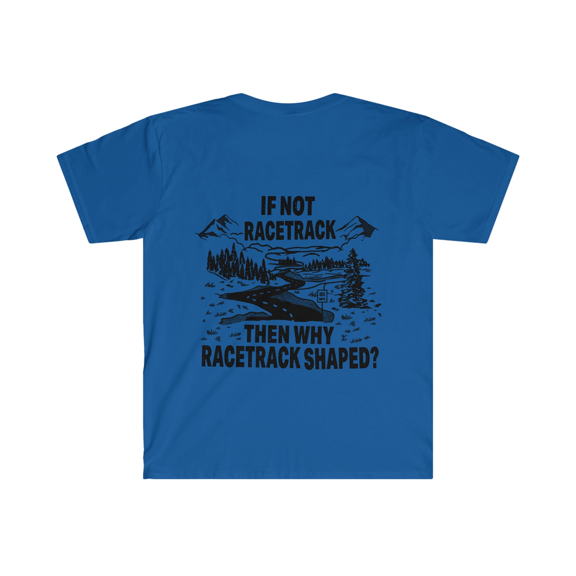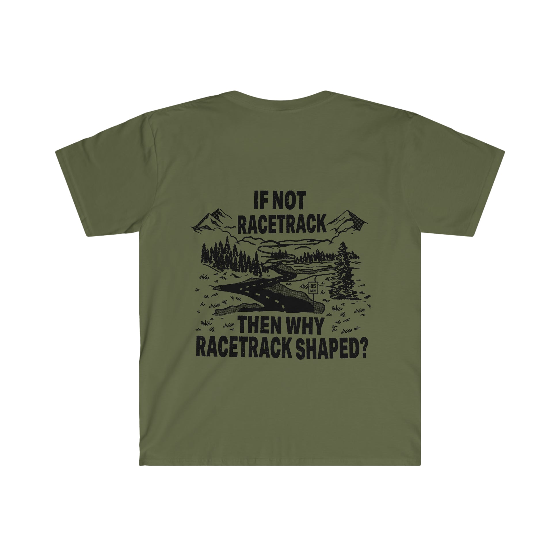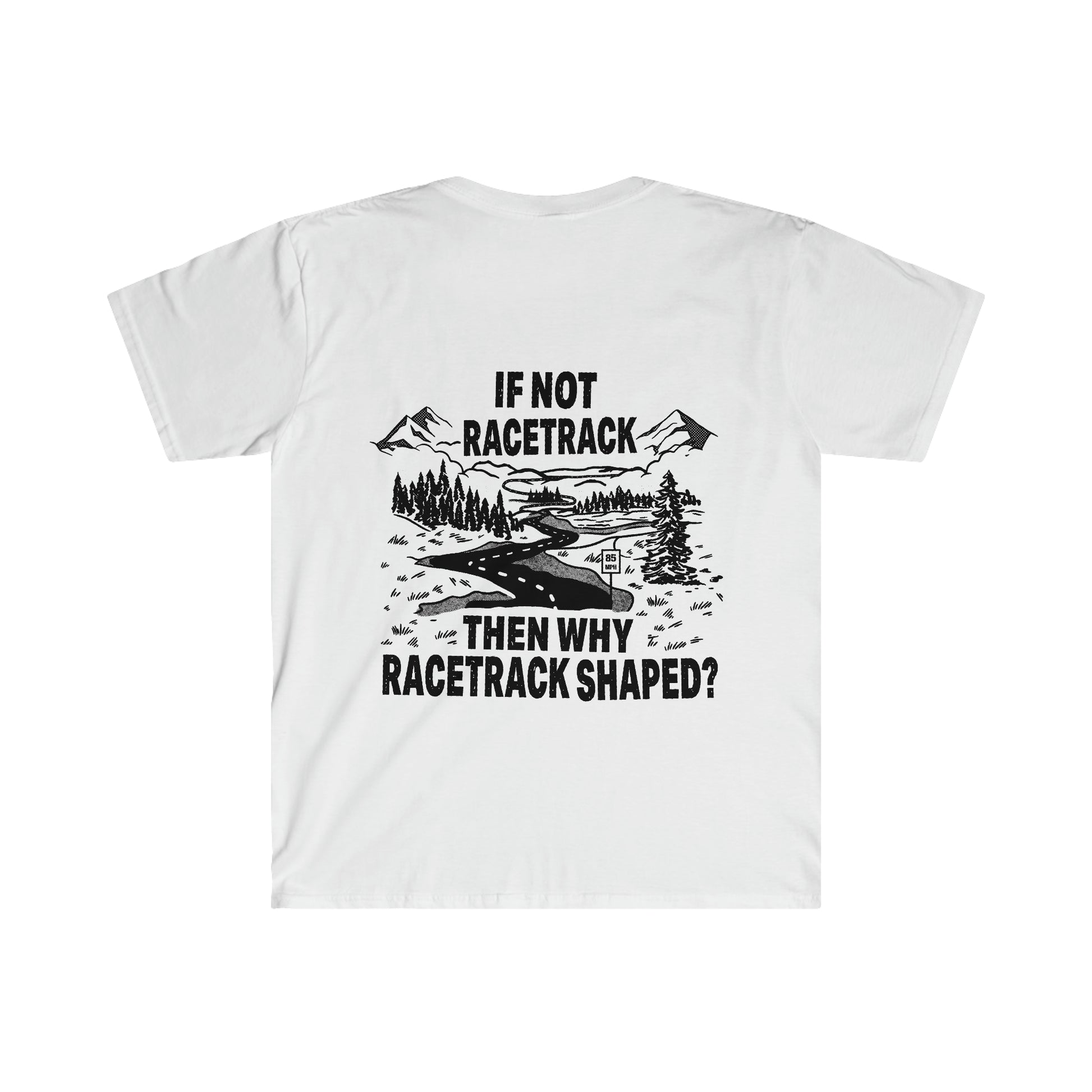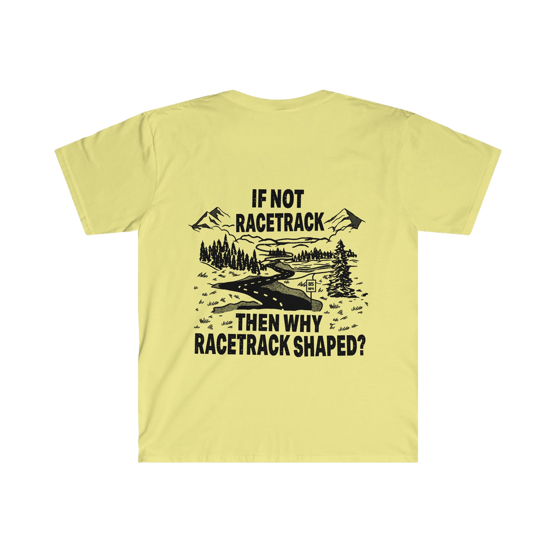 WHY RACETRACK SHAPED? Mountain Road Softstyle T-Shirt