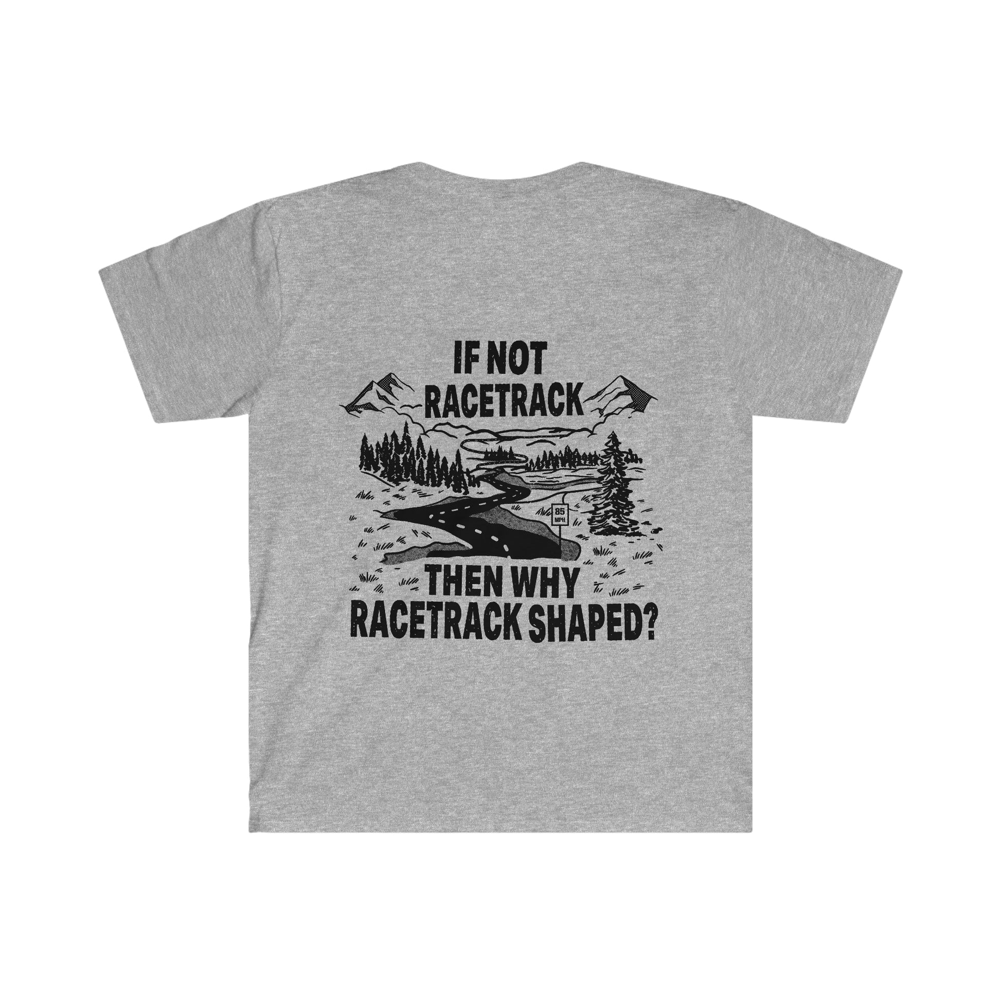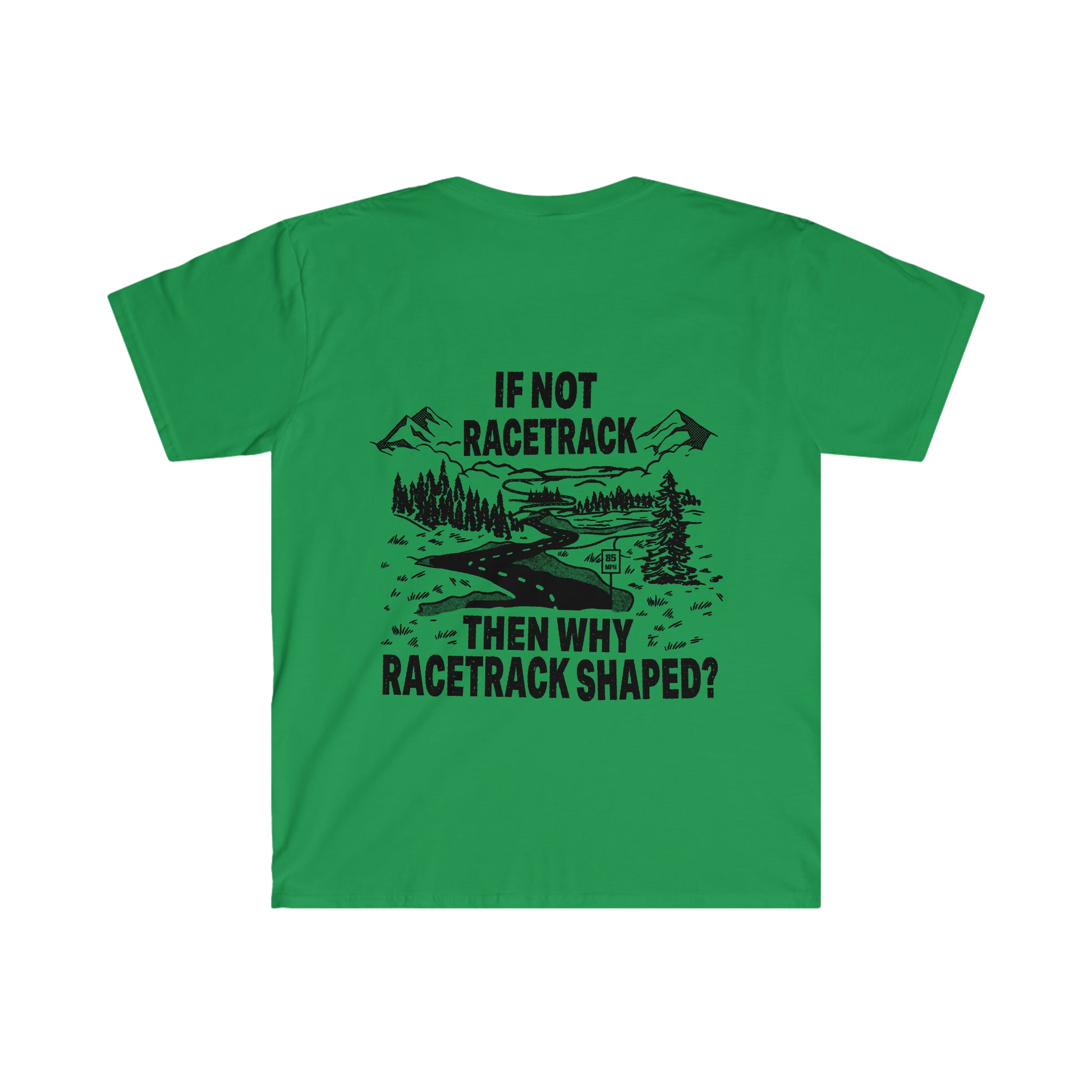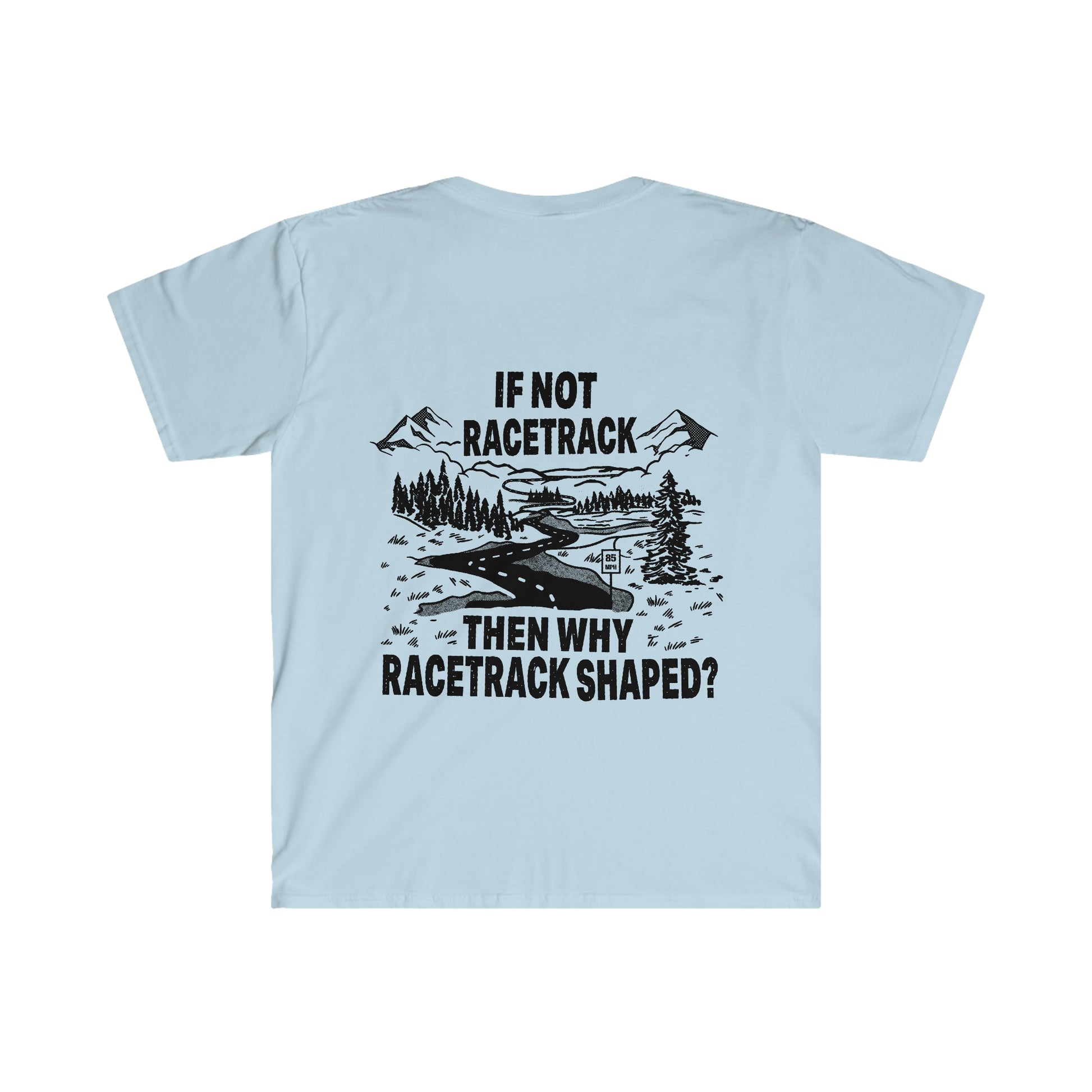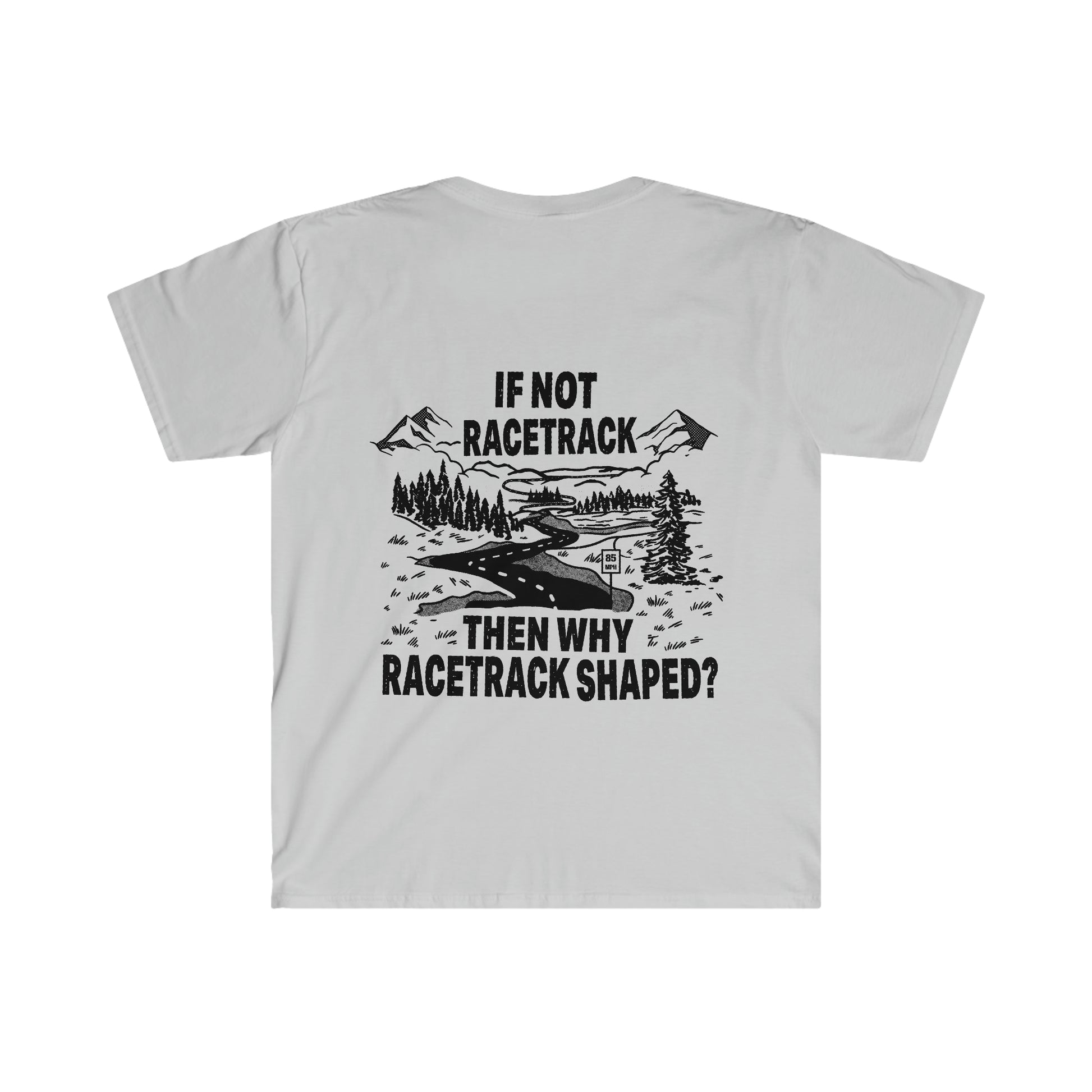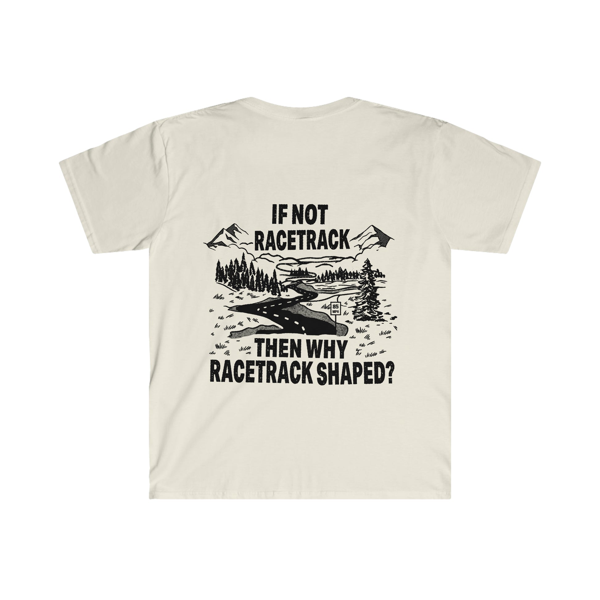 WHY RACETRACK SHAPED? Mountain Road Softstyle T-Shirt