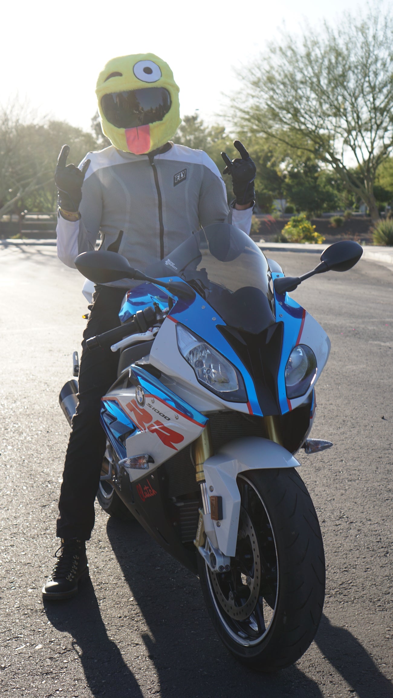 You can't find emoji motorcycle helmet covers like this one anywhere else in the world! Emojis are used in often in our daily conversations and everybody is familiar with these iconic yellow characters. The winking emoji helmet cover is a playful way to show that your riding mood is one of having fun and not taking things too seriously. This original design helmet cover is easily put on and removed due to it's simple elastic liner keeping the cover nice and snug on the helmet.